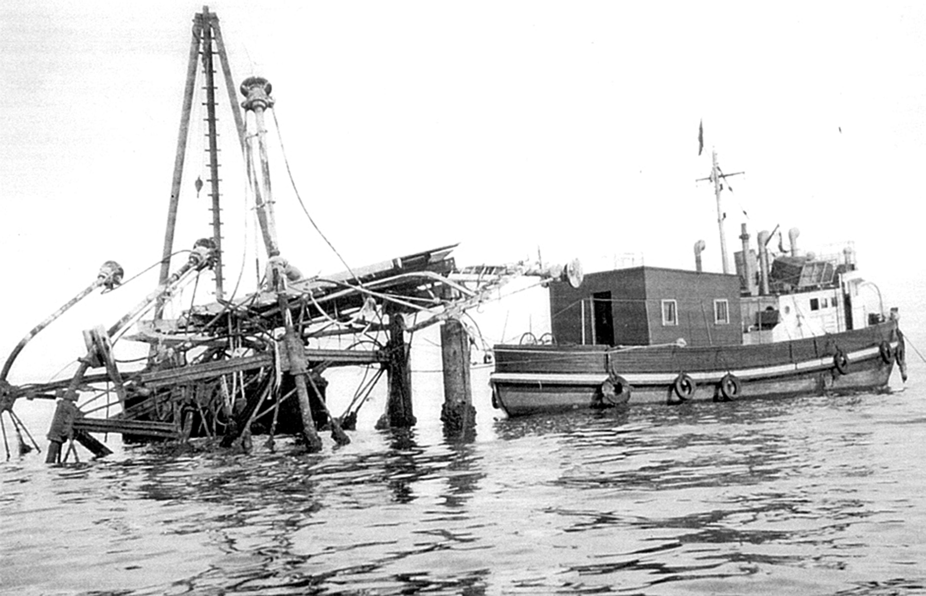 when they were saved by the tanker's crew. The damaged structure remained at its place until 1966/67,